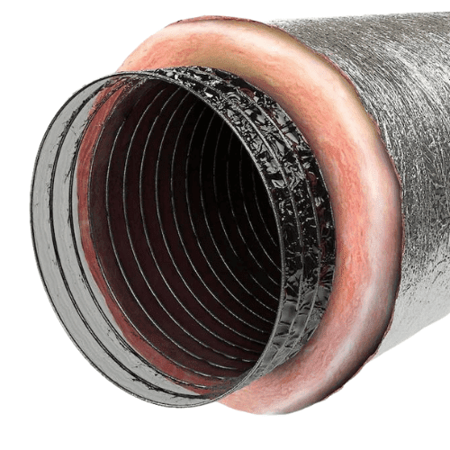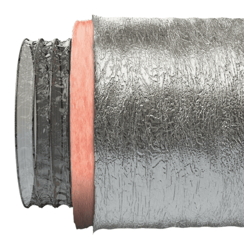 4”, 5”, 6”, 7”, 8”, 9”, 10”, 12”, 14”, 16”, 18” & 20” Flexible Air Duct with Pink Fiberglass Insulation